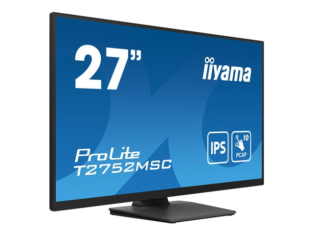 Produktbeskrivning iiyama ProLite T2752MSC-B1 - LED-skärm - Full HD (1080p) - 27" Typ av enhet LED-bakgrundsbelyst LCD-skärm - 27" - pekskärm URL med QR-kod för energimärke Https://eprel.ec.europa.eu/qr/1824494 Energiklass Klass E Egenskaper Pekskärm, USB 3.2 Gen 1 hubb Paneltyp IPS Bildförhållande 16:9 Ursprunglig upplösning Full HD (1080p) 1920 x 1080 vid 60 Hz Pixelhöjd 0.311 mm Ljusstyrka 400 cd/m² Kontrastförhållande 1000:1 Responstid 5 ms (grå-till-grå), 14 ms (normalt) Färgstöd 16,7 miljoner färger (8-bit) Inmatningsanslutningar HDMI, DisplayPort Displaylägesjusteringar Lutning Skärmbeläggning 7H Hard Coating, antifingeravtryck Spänning AC 100-240 V (50/60 Hz) Färg Svart, matt Dimensioner (BxDxH) - med ställ 61.4 cm x 23.95 cm x 40.3 cm Vikt 6.7 kg Standarder som följs Plug and Play, DDC-2B, DDC/CI, TUV Bauart, EAC, RoHS, ERP, WEEE, REACH, UKCA -