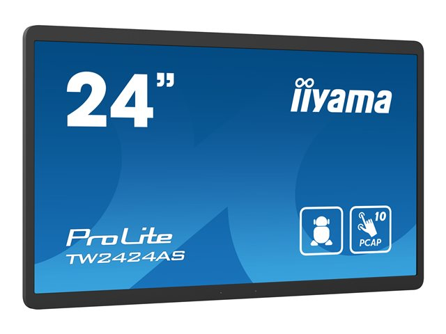 Produktbeskrivning iiyama ProLite TW2424AS-B1 - LED-skärm - Full HD (1080p) - 24" Typ av enhet LED-bakgrundsbelyst LCD-skärm - 24" - pekskärm Egenskaper Pekskärm, mikrofon, 802.11a/b/g/n/ac-nätverksadapter, Bluetooth 5.2 adapter, stereohögtalare Paneltyp IPS Bildförhållande 16:9 Ursprunglig upplösning Full HD (1080p) 1920 x 1080 vid 60 Hz Pixelhöjd 0.275 mm Kontrastförhållande 1000:1 Responstid 14 ms Färgstöd 16,7 miljoner färger Inmatningsanslutningar HDMI Inbyggt Ethernet Ja Skärmbeläggning Bländskydd Färg Svart, matt Dimensioner (BxDxH) 54.95 cm x 2.8 cm x 33.6 cm Vikt 4.23 kg Standarder som följs GMS, CE/EAC, RoHS, ERP, WEEE, REACH, UKCA Tillverkarens garanti 3 års garanti -