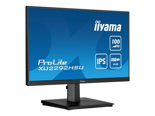 Produktbeskrivning iiyama ProLite XU2292HSU-B6 - LED-skärm - Full HD (1080p) - 22" Typ av enhet LED-bakgrundsbelyst LCD-skärm - 22" URL med QR-kod för energimärke Https://eprel.ec.europa.eu/qr/1772304 Energiklass Klass E Strömkonsumtion (driftläge) 13.5 W Egenskaper USB 3.2 Gen 1 hubb Paneltyp IPS Bildförhållande 16:9 Ursprunglig upplösning Full HD (1080p) 1920 x 1080 vid 100 Hz Pixelhöjd 0.248 mm Ljusstyrka 250 cd/m² Kontrastförhållande 1000:1 / 80000000:1 (dynamisk) Responstid 0.4 ms (MPRT) Färgstöd 16,7 miljoner färger Färgskala 72% NTSC, 99% sRGB Inmatningsanslutningar HDMI, DisplayPort Displaylägesjusteringar Lutning Skärmbeläggning Matt Spänning AC 100-240 V (50/60 Hz) Färg Mattsvart Dimensioner (BxDxH) 48.95 cm x 19.95 cm x 38.4 cm Vikt 3 kg Miljöstandarder TCO Certified Displays 9 Standarder som följs DDC-2B, DDC/CI, RoHS, WEEE, PSE Mark, REACH, TUV Bauart, ERP, VCCI Class B, EAC, UKCA Tillverkarens garanti 3 års garanti -