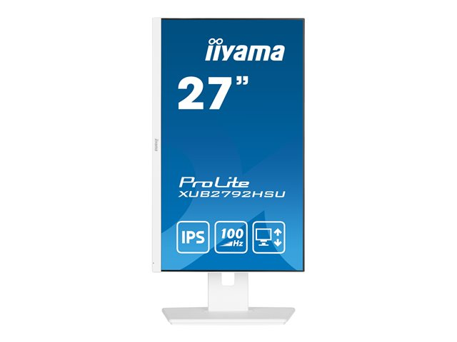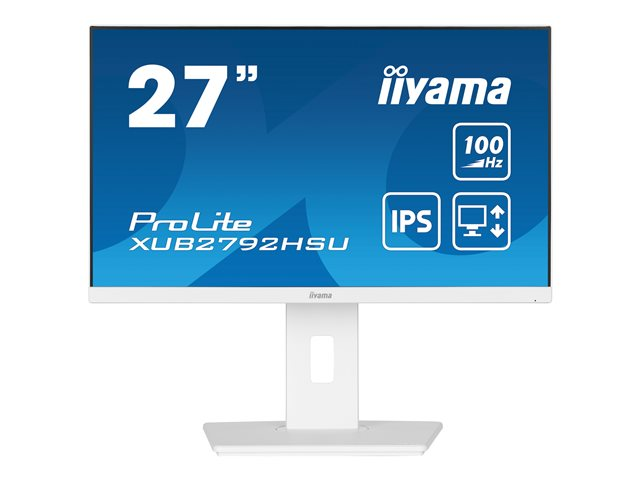 Produktbeskrivning iiyama ProLite XUB2792HSU-W6 - LED-skärm - Full HD (1080p) - 27" Typ av enhet LED-bakgrundsbelyst LCD-skärm - 27" URL med QR-kod för energimärke Https://eprel.ec.europa.eu/qr/1751479 Energiklass Klass E Adaptive-Sync-teknologi AMD FreeSync Egenskaper USB 3.2 Gen 1 hubb Paneltyp IPS Bildförhållande 16:9 Ursprunglig upplösning Full HD (1080p) 1920 x 1080 vid 100 Hz Pixelhöjd 0.311 mm Ljusstyrka 250 cd/m² Kontrastförhållande 1300:1 / 80000000:1 (dynamisk) Responstid 0.4 ms (MPRT) Färgstöd 16,7 miljoner färger Färgskala 72% NTSC, 99% sRGB Inmatningsanslutningar HDMI, DisplayPort Displaylägesjusteringar Höjd, pivot (rotation), vridbar bas, lutning Skärmbeläggning Matt Spänning AC 100-240 V (50/60 Hz) Färg Vit, matt Dimensioner (BxDxH) - med stativ (lägsta position) 61.25 cm x 20.95 cm x 39.4 cm Vikt 5.7 kg Miljöstandarder TCO Certified Displays 9 Standarder som följs DDC-2B, DDC/CI, RoHS, WEEE, PSE Mark, REACH, TUV Bauart, ERP, VCCI Class B, EAC, REACH SvHC, UKCA Tillverkarens garanti 3 års garanti -