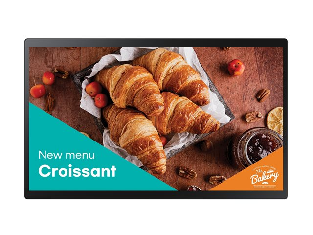 Produktbeskrivning Samsung QB24C-T QBC-T Series - 24" Klass (23.8" visbar) LED-bakgrundsbelyst LCD-skärm - Full HD - för interaktiv skyltning/interaktiv kommunikation Typ av produkt LED-bakgrundsbelyst, platt LCD-skärm med pekskärm (multitouch) Diagonalklass 24" Diagonalstorlek 23.8" Kommersiell användning Ja - interaktiv digital skyltning Färg Svart Plattform Tizen OS Upplösning 1920 x 1080 Visningsformat 1080p Videogränssnitt HDMI HDMI-portskvantitet 1 portar Anknytningsbarhet Wi-Fi, LAN, Bluetooth Teknik ADS LCD-teknik för bakgrundsbelysning LED-bakgrundsbelysning - kant-LED Bildkvot 16:9 TV-tuner Ingen mottagare Kommersiella funktioner SMART Signage Platform, Home UI, Samsung VXT CMS, MagicInfo S10 Player, 11:e generationens SoC (Kant-SU2e), Chromium M94 Web Engine (uppgraderingsbar), Custom Home, Microsoft 365, Tizen Enterprise Platform, VMWare Bildförbättringar Megadynamiskt kontrastförhållande, 72 % färgomfång NTSC Högtalarsystem 1 högtalare Lagringskapacitet 8 GB (3 GB ledigt) USB Ja Inkluderade tillbehör Fjärrkontroll Spänning AC 100-240 V (50/60 Hz) Energiförbrukning vid drift 23 Watt Dimensioner (BxDxH) - utan ställ 54.79 cm x 3.46 cm x 33.44 cm Vikt 4 kg Miljöstandarder EPEAT Bronze -