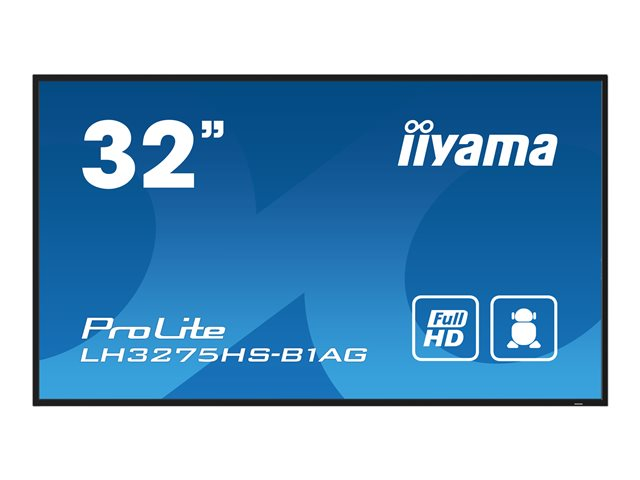 Produktbeskrivning iiyama ProLite LH3275HS-B1AG 32" LED-bakgrundsbelyst LCD-skärm - Full HD - för digital skyltning Typ av produkt LED-bakgrundsbelyst, platt LCD-skärm med inbyggd SoC-mediespelare URL med QR-kod för energimärke Https://eprel.ec.europa.eu/qr/1975417 Diagonalklass 32" Kommersiell användning Ja - digital skyltning Färg Svart, matt Plattform Android Upplösning 1920 x 1080 Visningsformat 1080p Rampris och förhöjningsteknologi 60 Hz Frame Rate Videogränssnitt HDMI HDMI-portskvantitet 2 portar Anknytningsbarhet Wi-Fi, LAN PC-gränssnitt DisplayPort Teknik IPS LCD-teknik för bakgrundsbelysning LED-bakgrundsbelysning Bildkvot 16:9 TV-tuner Ingen mottagare Kommersiella funktioner FailOver Bildförbättringar 72 % färgomfång NTSC Högtalarsystem 2 högtalare Lagringskapacitet 32 GB USB 2 portar Inkluderade tillbehör Fjärrkontroll, kabelklämmor, klistermärken för skruvhål, skydd för strömbrytare Spänning AC 100-240 V (50/60 Hz) Energiklass Klass G Energiförbrukning vid drift 46 Watt Strömkonsumtion (driftläge) 45.7 W Strömkonsumtionsställ med 0.5 Watt Dimensioner (BxDxH) 72.55 cm x 5.4 cm x 42.18 cm Vikt 5.2 kg Tillverkarens garanti 3 års garanti -
