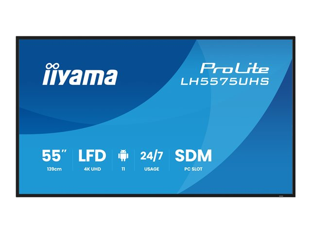 55" Diagonal klass (54.6" visbar) LED-bakgrundsbelyst LCD-skärm - digital skyltning - med inbyggd mediespelare, SDM Slot PC - 4K UHD (2160p) 3840 x 2160 - svart (ram), matt finish