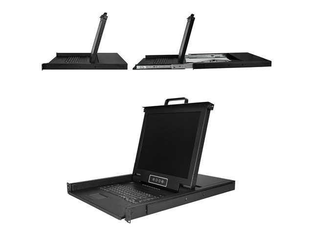 Integrerad KVM-switch med 17-tums LCD-skärm - 1U LCD KVM-låda - OSD KVM - Hållbar 50 000 MTBF - USB + VGA-support - KVM-konsol med omkopplare för tangentbord/video/mus - 8 portar - USB - 17" - kan monteras i rack - 1280 x 1024 @ 60 Hz - 250 cd/m² - 1000:1 - 5 ms - VGA - svart - 1U