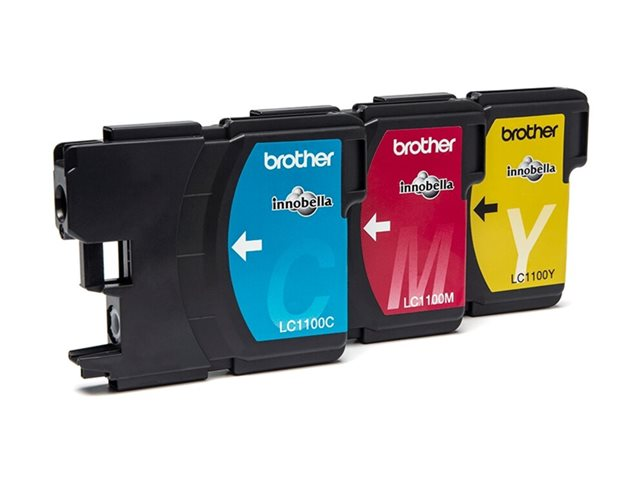Produktbeskrivning Brother LC1100RBWBP - gul, cyan, magenta - original - bläckpatron Typ av produkt Bläckpatron Utskriftsteknik Bläckstråle Utskriftsfärg Gul, cyan, magenta Egenskaper för tonerkassett Brother Innobella Förpackningstyp Blister Kompatibel med Brother DCP-185C, DCP-385C, DCP-395CN, DCP-6690CW, DCP-J715W, MFC-490CW, MFC-5490CN, MFC-5890CN, MFC-5895CW, MFC-6490CW, MFC-6890CDW, MFC-790CW, MFC-795CW, MFC-990cw, MFC-J615W; Justio MFC-5890CN -