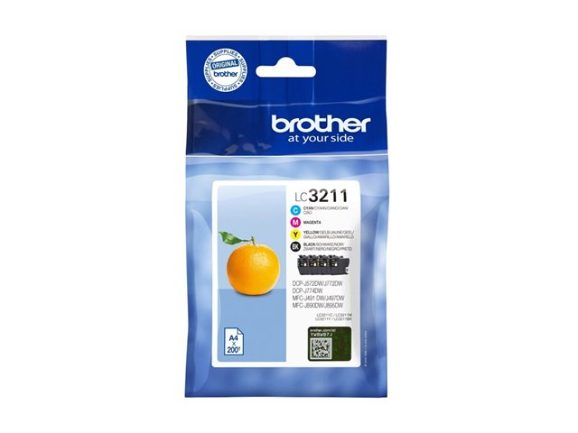 Produktbeskrivning Brother LC3211 Value Pack - 4-pack - svart, gul, cyan, magenta - original - bläckpatron Typ av produkt Bläckpatron Utskriftsteknik Bläckstråle Utskriftsfärg Svart, gul, cyan, magenta Avkastning Upp till 200 sidor Medföljande antal 4-pack Kompatibel med Brother DCP-J572DW, DCP-J772DW, DCP-J774DW, MFC-J890DN, MFC-J890DW, MFC-J890DWN, MFC-J895DW -