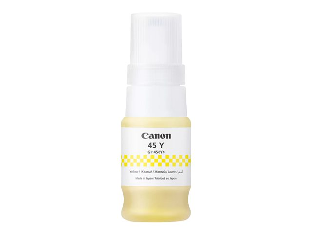 Produktbeskrivning Canon GI 45 Y - gul - original - påfyllnadsbläck Typ av produkt Påfyllnadsbläck Utskriftsteknik Bläckstråle Utskriftsfärg Gul (pigmenterad) Kapacitet 40 ml Avkastning Upp till 3000 sidor ISO/IEC 24712 Kompatibel med MAXIFY GX1040, GX2040 -