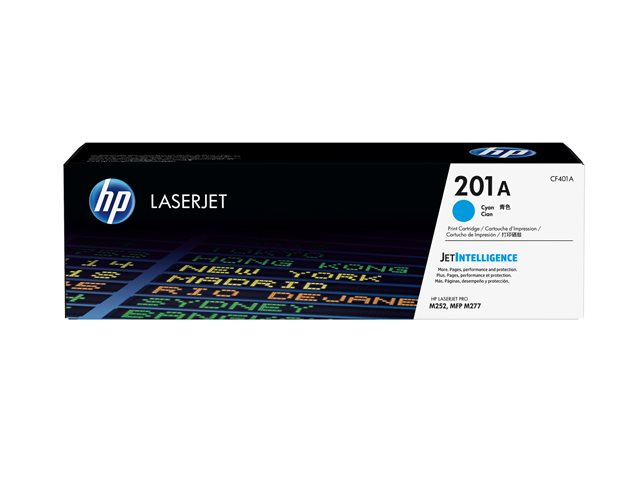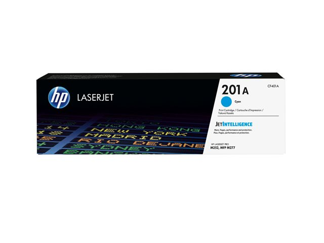 Produktbeskrivning HP 201A - cyan - original - LaserJet - tonerkassett (CF401A) Typ av produkt Tonerkassett Utskriftsteknik Laser HP-submärke LaserJet Utskriftsfärg Cyan Avkastning Upp till 1400 sidor ISO/IEC 19798 Kompatibel med Color LaserJet Pro M252dn, M252dw, M252n, MFP M277c6, MFP M277dw, MFP M277n -