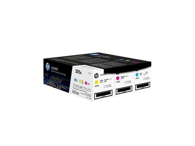 Produktbeskrivning HP 305A - 3-pack - gul, cyan, magenta - original - LaserJet - tonerkassett (CF370AM) Typ av produkt Tonerkassett Utskriftsteknik Laser HP-submärke LaserJet Utskriftsfärg Gul, cyan, magenta Avkastning Upp till 2600 sidor ISO/IEC 19798 Medföljande antal 3-pack Kompatibel med LaserJet Pro 300 M351a, 400 M451dn, 400 M451dw, 400 M451nw, MFP M375nw, MFP M475dn, MFP M475dw -