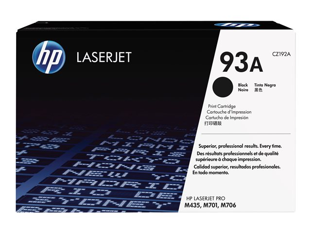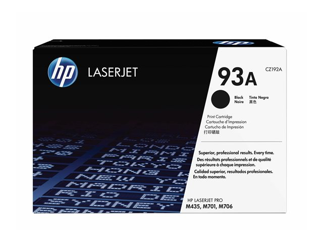 Produktbeskrivning HP 93A - svart - original - LaserJet - tonerkassett (CZ192A) Typ av produkt Tonerkassett Utskriftsteknik Laser HP-submärke LaserJet Utskriftsfärg Svart Avkastning Upp till 12000 sidor ISO/IEC 19752 Kompatibel med LaserJet Pro M706n, MFP M435nw -