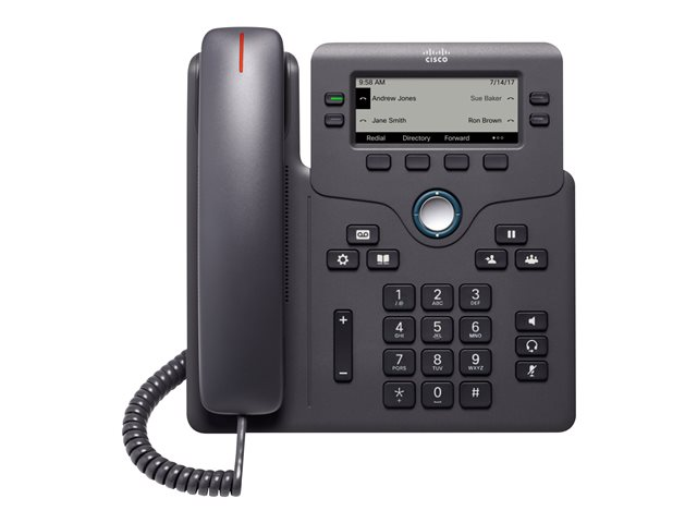 Produktbeskrivning Cisco IP Phone 6851 - VoIP-telefon Typ av produkt VoIP-telefon Huvudegenskaper Stöd för flera VoIP-protokoll, integrerad Ethernet-switch VoIP-protokoll SIP, SRTP Röst-Codec G.722, G.729ab, G.711u, G.711a, iLBC, iSAC, Opus Linjer som stöds 4 linjer Högtalartelefon Ja Samtalstjänster Röstmeddelande, Nummerpresentation, Samtal väntar, Vidarebefordran av samtal, Samtalsöverföring, Samtalsparkering, Kapacitet för meddelande väntar Bildskärm LCD-skärm - monokrom - Ja Antal nätverksportar 2 x Ethernet 10Base-T/100Base-TX/1000Base-T Färg Träkol -