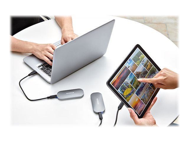 Produktbeskrivning KIOXIA EXCERIA PLUS LXD10S002TG8 - SSD - 2 TB - USB 3.2 Gen 2 Typ SSD-enhet - extern (portabel) Kapacitet 2 TB Gränssnitt USB 3.2 Gen 2 - USB-C Egenskaper Stöttålig, validering av lösenord, aluminumhölje, 3D BiCS Flash Strömkälla USB-buss Dimensioner (BxDxH) 105 mm x 45 mm x 14.7 mm Vikt 76 g Tillverkarens garanti 3 års garanti -