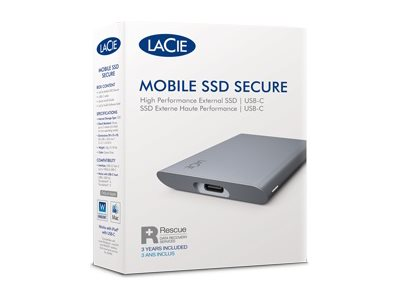 Produktbeskrivning LaCie Mobile Secure STKH2000800 - SSD - High Performance - 2 TB - USB 3.2 Gen 2 Typ SSD-enhet - extern (portabel) Kapacitet 2 TB Maskinvarukryptering Ja Krypteringsalgoritm 256 bitars AES Gränssnitt USB 3.2 Gen 2 - USB-C Dataöverföringshastighet 10,0 GB (USB 3.2 Gen2) Drivenhetsklass High Performance Egenskaper Stöttålig Strömkälla USB-buss Färg Rymdgrå Dimensioner (BxDxH) 78.36 mm x 98.36 mm x 9 mm Vikt 45 g Lokalisering Världsomspännande Tillverkarens garanti 3 års garanti Kombinerad med 3 års Seagate Rescue Data Recovery -