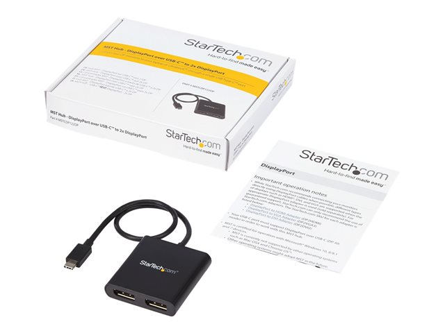 MST-hubb med 2 portar - DisplayPort-adapter - USB-C (hane) till DisplayPort (hona) - Displayport 1.2/Thunderbolt 3 - 38.6 m - USB-ström, 4K30 Hz (3840 x 2160) stöd, 2560 x 1600 (WQXGA)-stöd 60 Hz - svart - för P/N: BNDTB10GI, BNDTB210GSFP, BNDTB310GNDP, BNDTB410GSFP, BNDTB4M2E1, BNDTBUSB3142