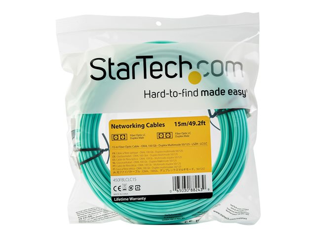 StarTech.com 15 m OM4 LC to LC Multimode Duplex Fiber Optic Patch Cable- Aqua