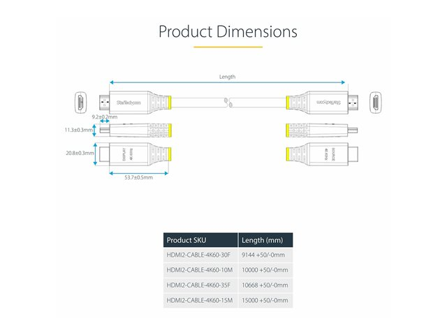 Produktbeskrivning StarTech.com 10m (32.8ft) Active High Speed HDMI Cable, 4K60Hz - HDMI-kabel med Ethernet - 10 m Kabel Hög hastighet - HDMI-kabel med Ethernet Teknik Skärmad American Wire Gauge (AWG) 24 Kabellängd 10 m Färg Svart Kontaktdon HDMI - hane Kontakt (andra änden) HDMI - hane Egenskaper Aktiv kabel, 2K144Hz stöd, 4K60Hz UHD-stöd, HDR10-stöd Tillverkarens garanti Begränsad livstidsgaranti -