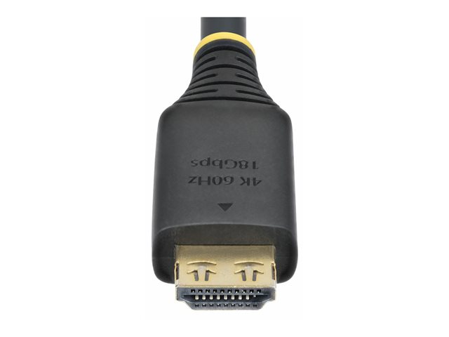 Produktbeskrivning StarTech.com 15ft High Speed HDMI Cable w/Gripping Connectors, 4K 60Hz - HDMI-kabel med Ethernet - 4.5 m Kabel Hög hastighet - HDMI-kabel med Ethernet Teknik Skärmad American Wire Gauge (AWG) 30 Kabellängd 4.5 m Färg Svart Kontaktdon HDMI - hane Kontakt (andra änden) HDMI - hane Egenskaper Halogenfri, passiv kabel, 4K60Hz stöd, 1080p stöd 240 Hz, 2K144Hz stöd Tillverkarens garanti Begränsad livstidsgaranti -