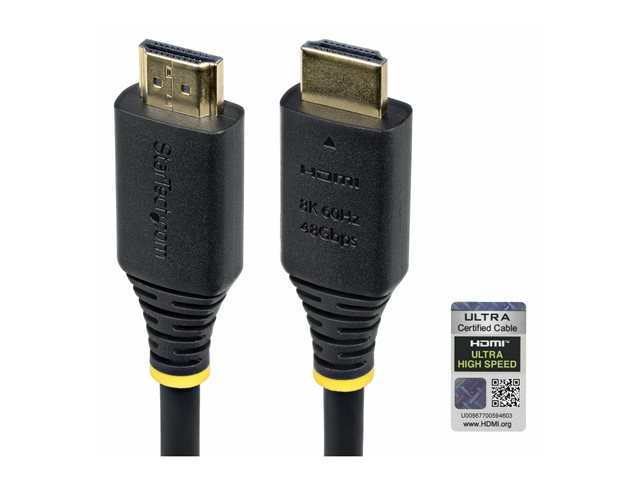Produktbeskrivning StarTech.com HDMI-kabel - 2 m Kabel Ultra High Speed - HDMI-kabel Teknik Skärmad American Wire Gauge (AWG) 30 Kabellängd 2 m Färg Svart Kontaktdon HDMI - hane Kontakt (andra änden) HDMI - hane Egenskaper Passiv kabel, 4K120Hz stöd, 8K60 Hz (7680 x 4320) stöd Tillverkarens garanti Begränsad livstidsgaranti -