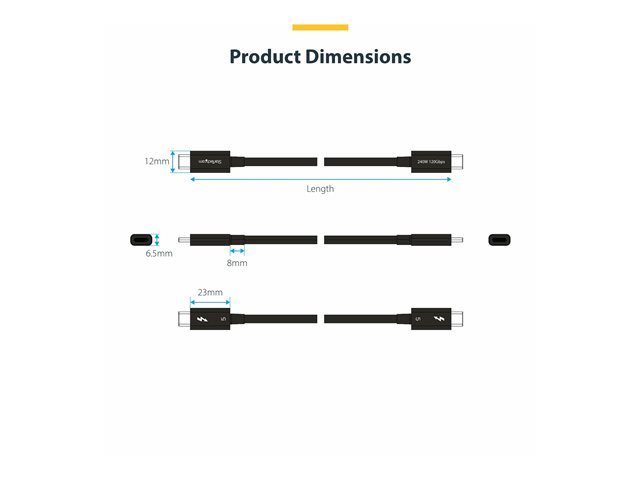 StarTech.com 1.5ft (50cm) Thunderbolt 5 Cable, 80Gbps/120Gbps, Certified