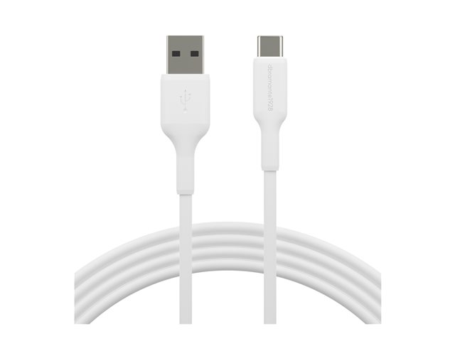 USB-kabel - 24 pin USB-C hane till USB 2.0 A hane - 2 m - vit - ladda och synka, flätad kabel, 100 % återvunnen plast