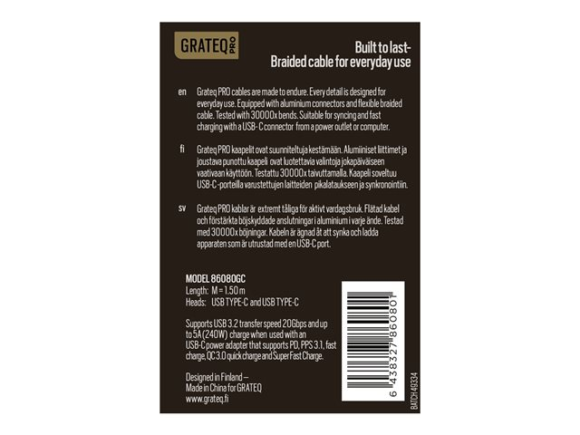 GRATEQ - USB-kabel - 24 pin USB-C (hane) till 24 pin USB-C (hane)