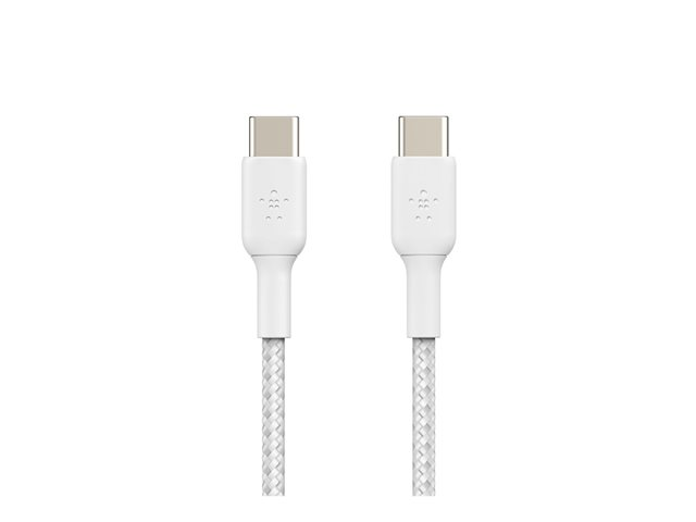 Produktbeskrivning Belkin BoostCharge - USB typ C-kabel - 24 pin USB-C till 24 pin USB-C - 1 m Typ USB typ C-kabel Förpackad kvantitet 2 (specificationerna gällerenskild post) Egenskaper USB Power Delivery (60W), synkronisering och laddning, klammer, dubbelflätad, tål 30 000 böjar Kabellängd 1 m Kontaktdon 24 pin USB-C - hane Kontakt (andra änden) 24 pin USB-C - hane Märkström 3 A Standarder som följs USB / USB 2.0 Färg Vit Tillverkarens garanti 2 års garanti -