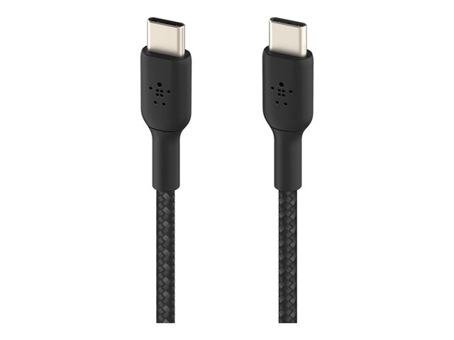 USB-C (hane) till USB-C (hane) - USB 2.0 - 20 V - 3 A - 15 cm - USB Power Delivery (60W), flätad kabel - svart