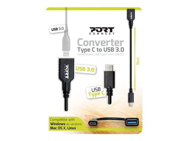 Produktbeskrivning PORT Connect - USB typ C-adapter - USB typ A till USB-C - 15 cm Typ USB typ C-adapter Kabellängd 15 cm Kontaktdon 9-stifts USB typ A - hona Kontakt (andra änden) 24 pin USB-C - hane Standarder som följs USB 3.0 Tillverkarens garanti 2 års garanti -