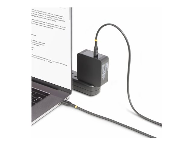 Produktbeskrivning StarTech.com 2m USB C Charging Cable, USB-IF Certified USB-C Cable, 240W - USB typ C-kabel - USB-C till USB-C - 2 m Typ USB typ C-kabel Teknik Skärmad Egenskaper Utökat effektområde (EPR), USB-strömförsörjning (240W), Stöd för Power Delivery 3,1, synkronisering och laddning, EMI-skydd, halogenfri, 480 Mbit/s datahastighet, stöd för snabbladdning, bussdriven, livslängd 10000 anslutningar Kabellängd 2 m Kontaktdon 24 pin USB-C - hane Kontakt (andra änden) 24 pin USB-C - hane Märkspänning 48 V Märkström 5 A Standarder som följs USB / USB 2.0 Färg Svart Tillverkarens garanti Begränsad livstidsgaranti -