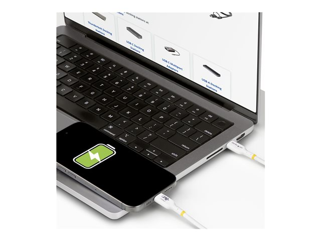 Produktbeskrivning StarTech.com 2m USB C Charging Cable, USB-IF Certified USB-C Cable, 240W - USB typ C-kabel - USB-C till USB-C - 2 m Typ USB typ C-kabel Teknik Skärmad Egenskaper Halogenfri, passiv kabel, utökat effektområde (EPR), USB-strömförsörjning (240W), Stöd för Power Delivery 3,1, synkronisering och laddning, EMI-skydd, e-markörchip, kopparledare, 480 Mbit/s datahastighet, stöd för snabbladdning, bussdriven, livslängd 10000 anslutningar Kabellängd 2 m Kontaktdon 24 pin USB-C - hane Kontakt (andra änden) 24 pin USB-C - hane Märkspänning 48 V Märkström 5 A Standarder som följs USB / USB 2.0 Färg Vit Tillverkarens garanti Begränsad livstidsgaranti -
