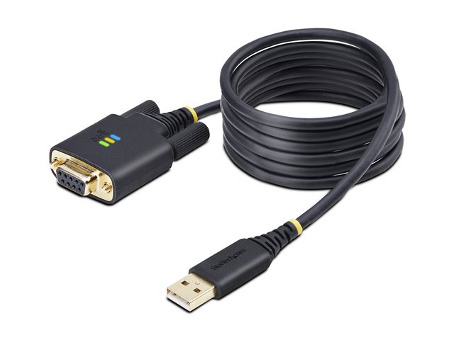 Produktbeskrivning StarTech.com 6.6ft/2m USB to Null Modem Serial Adapter Cable, FTDI, RS232 - USB / seriell kabel - USB till DB-9 - 2 m Typ USB / seriell kabel Egenskaper EMI/RFI-skydd, skydd mot elektrostatisk urladdning (ESD), FTDI-styrenhet, LED-statusindikator, TPE-kontakthus, bussdriven, 921,6 Kbps datatakt Kabellängd 2 m Kontaktdon 4-stifts USB typ A - hane Kontakt (andra änden) 9 pin D-Sub (DB-9) - hona Standarder som följs USB / USB 2.0 Färg Svart Tillverkarens garanti 2 års garanti -