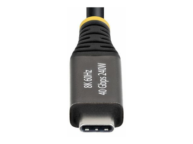 Produktbeskrivning StarTech.com - USB typ C-kabel - 24 pin USB-C till 24 pin USB-C - 2 m Typ USB typ C-kabel Teknik Koaxial Egenskaper Aktiv kabel, 8K60Hz stöd, 4K240Hz stöd, utökat effektområde (EPR), upp till 40 Gbps dataöverföringshastighet, Stöd för Power Delivery 3,1, EMI-skydd, 32 ljudkanaler, High Bit Rate 3 (HBR3), Display Stream Compression (DSC), upp till 240 W strömleverans, HDR10+ stöd, stöd för DisplayPort alt-läge 2,1 Kabellängd 2 m Kontaktdon 24 pin USB-C - hane Kontakt (andra änden) 24 pin USB-C - hane Standarder som följs USB4 / Thunderbolt / DisplayPort 2.1 Färg Svart Tillverkarens garanti Begränsad livstidsgaranti -