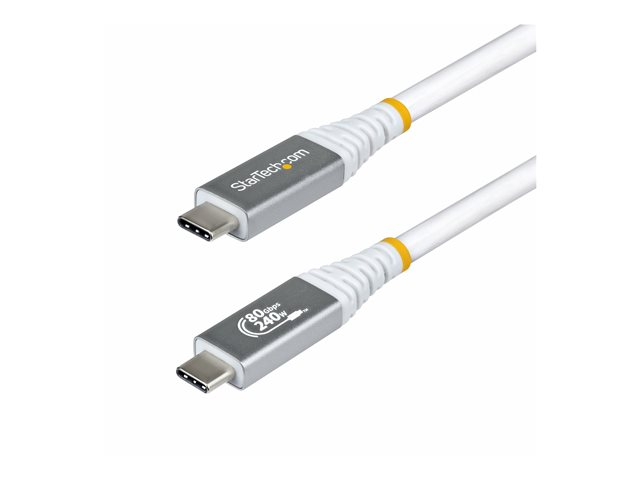 Produktbeskrivning StarTech.com - USB typ C-kabel - 24 pin USB-C till 24 pin USB-C - 51.33 cm Typ USB typ C-kabel Teknik Koaxial Egenskaper 4K120Hz stöd, 8K60Hz stöd, utökat effektområde (EPR), Stöd för Power Delivery 3,1, EMI-skydd, e-markörchip, HDR-stöd, 32 ljudkanaler, HDR10-stöd, High Bit Rate 3 (HBR3), Display Stream Compression (DSC), upp till 240 W strömleverans, HDR10+ stöd, stöd för DisplayPort alt-läge 2,1, 80 Gb datahastighet Kabellängd 51.33 cm Kontaktdon 24 pin USB-C - hane Kontakt (andra änden) 24 pin USB-C - hane Standarder som följs USB4 / Thunderbolt / DisplayPort 2.1 Färg Vit -