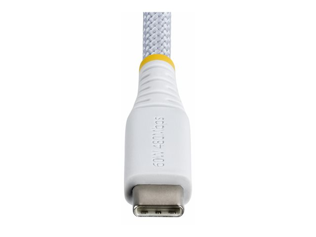 Produktbeskrivning StarTech.com - USB typ C-kabel - USB-C till USB-C - 2 m Typ USB typ C-kabel Egenskaper USB Power Delivery (60W), stöd för Power Delivery 2.0, robust, rak, klammer, trasselfri, märkta kontakter, dubbelflätad, 480 Mbit/s datahastighet, livslängd 10000 anslutningar Kabellängd 2 m Kontaktdon 24 pin USB-C - hane Kontakt (andra änden) 24 pin USB-C - hane Märkström 3 A Standarder som följs USB / USB 2.0 Färg Vit Tillverkarens garanti Begränsad livstidsgaranti -