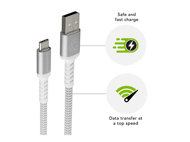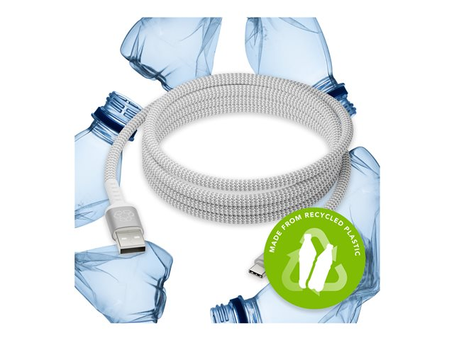 USB-kabel - USB (hane) till 24 pin USB-C (hane) - USB 2.0 - 2.5 m - strömöverföring upp till 36 W, flätad kabel, 100 % återvunnen plast