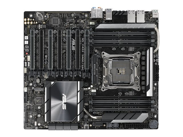 Produktbeskrivning ASUS WS C422 SAGE/10G - moderkort - SSI CEB - LGA2066 Socket - C422 Typ av produkt Moderkort - SSI CEB Kretstyp Intel C422 Processor-socket 1 x LGA2066 Socket Kompatibla processorer Xeon W Max. RAM-storlek 512 GB RAM-stöd 8 DIMM-kortplatser - DDR4, ECC, registrerad, Load-Reduced Lagringsportar 8 x SATA-600 (RAID), 2 x M.2, 2 x U.2 USB/FireWire-portar 1 x USB-C Gen 2 + 1 x USB 3.1 Gen 2 + 4 x USB 3.1 Gen 1 + (1 x USB 3.1 Gen 2 + 2 x USB 3.1 Gen 1 via headers) Ljud HD-ljud (8 kanaler) LAN 2 x 10 Gigabit Ethernet -