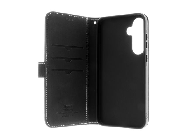 Produktbeskrivning Insmat Exclusive - baksidesskydd för mobiltelefon Typ av produkt Baksidesskydd för mobiltelefon Material Genuint läder, kartong+papper+aluminiumfolie, termoplastisk polyuretan (TPU), bomullssömmar Färg Svart Designat för Samsung Galaxy A55 -