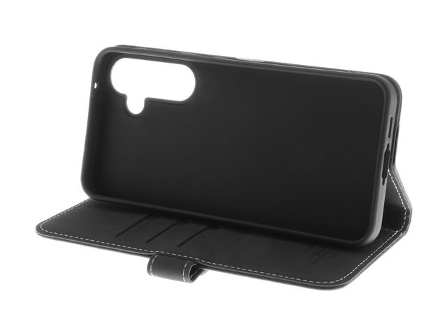 genuint läder, kartong+papper+aluminiumfolie, termoplastisk polyuretan (TPU), bomullssömmar - svart - för Samsung Galaxy A55
