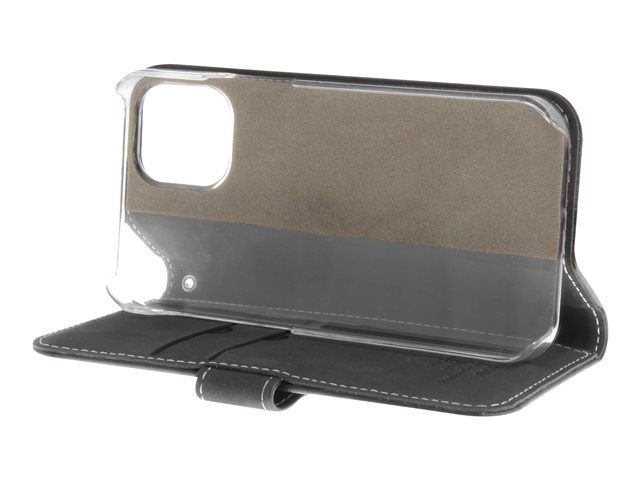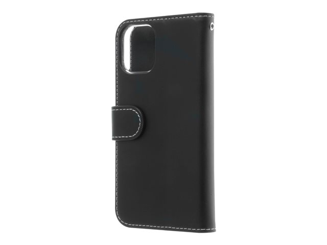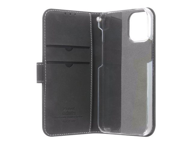 Vikbart fodral för mobiltelefon - genuint läder, papper, kartong, polykarbonat, aluminiumfolie - svart - för Apple iPhone 12 mini