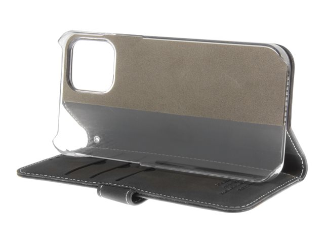 Vikbart fodral för mobiltelefon - papper, kartong, läder, polykarbonat, bomull, aluminiumfolie - svart - för Apple iPhone 12, 12 Pro