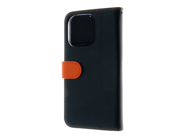 Produktbeskrivning Insmat Exclusive - vikbart fodral för mobiltelefon Typ av produkt Vikbart fodral för mobiltelefon Material Genuint läder, polykarbonat, kartong+papper+aluminiumfolie Färg Svart, orange Designat för Apple iPhone 15 Pro -