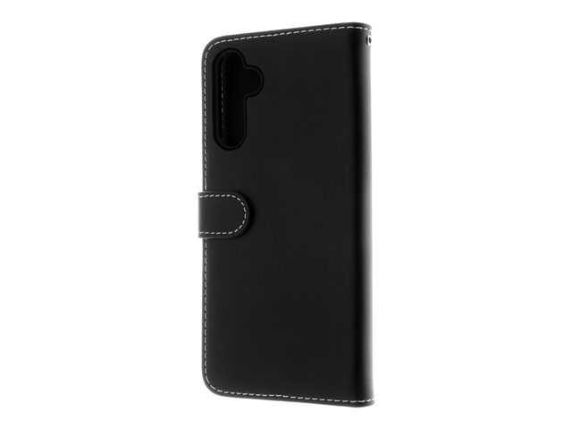 Produktbeskrivning Insmat Exclusive - vikbart fodral för mobiltelefon Typ av produkt Vikbart fodral för mobiltelefon Material Läder, kartong+papper+aluminiumfolie, hållare av termoplastiskt polyuretan (TPU), bomullssömmar Färg Svart Designat för Samsung Galaxy A05s -