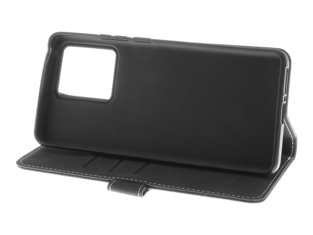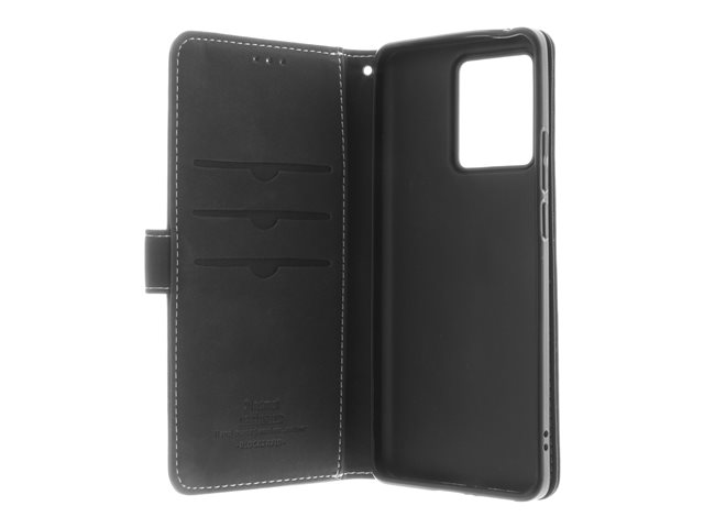 genuint läder, polykarbonat, kartong+papper+aluminiumfolie, bomullssömmar - svart - för Motorola Moto Edge 40