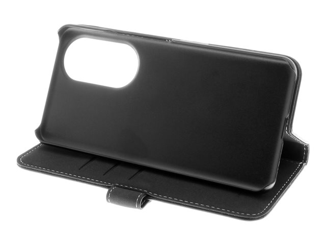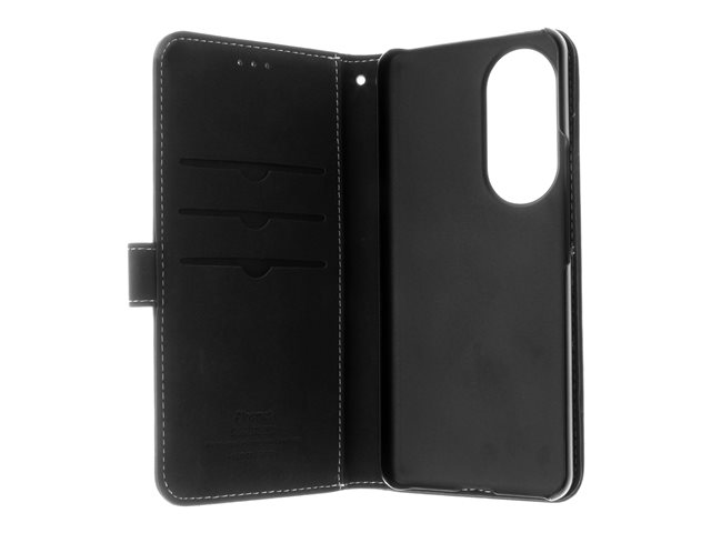 genuint läder, bomullssömmar, bakre PC-plåt - svart - för Honor 90