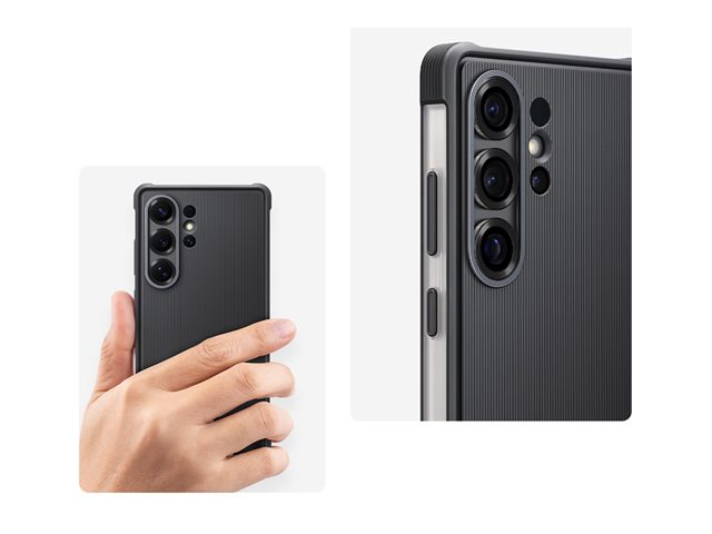 Produktbeskrivning Samsung EF-RS938 - baksidesskydd för mobiltelefon Typ av produkt Baksidesskydd för mobiltelefon Färg Svart Återvunnet produktinnehåll 9 % - tillverkad av biobaserat material Designat för Galaxy S25 Ultra -