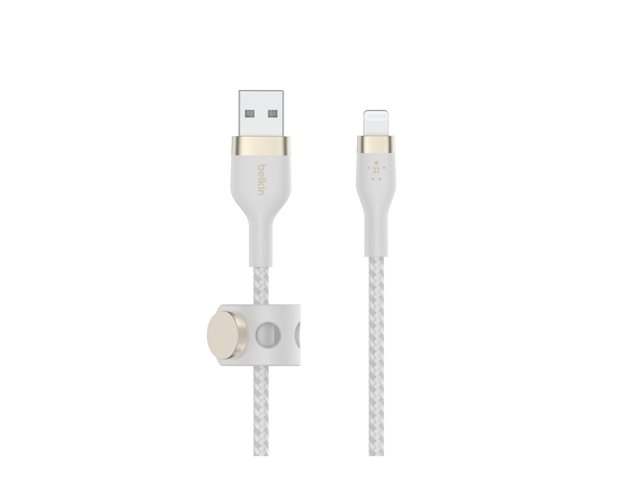 Produktbeskrivning Belkin BoostCharge Lightning-kabel - 3 m Kabel Lightning-kabel Kabellängd 3 m Färg Vit Kontaktdon USB - hane Kontakt (andra änden) Lightning - hane Egenskaper Flätad -