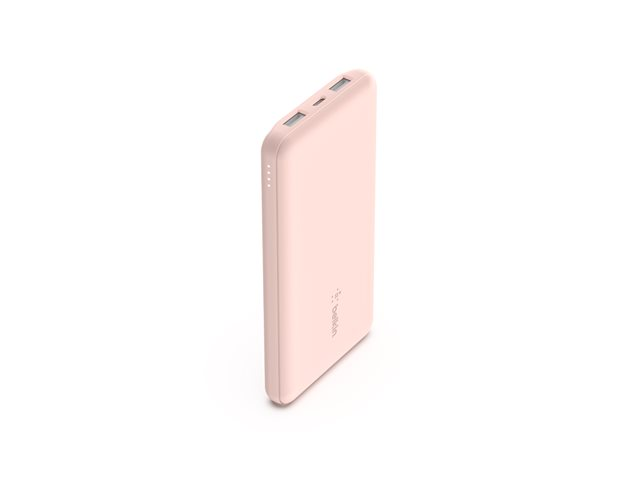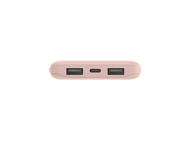 Produktbeskrivning Belkin BoostCharge power bank - USB-C, 2 x USB - 18 Watt Typ av produkt Power bank Utformad för Surfplatta, mobiltelefon Dimensioner (BxDxH) 13.183 cm x 6.833 cm x 1.575 cm Vikt 222 g Färg Guldrosa Typ av utkontakt Total 3: USB-C, 2 x USB Batteri 10000 mAh Effekt 18 Watt Kablar USB-A till USB-C strömkabel Tillverkarens garanti 2 års garanti -