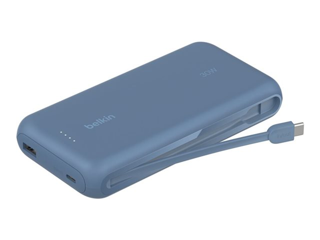 Produktbeskrivning Belkin BoostCharge power bank - med integrerad kabel - 2 x USB-C, USB - 30 Watt Typ av produkt Power bank Utformad för Surfplatta, mobiltelefon Dimensioner (BxDxH) 7.62 cm x 15.4 cm x 2.51 cm Vikt 395 g Färg Blå Typ av utkontakt Total 3: 2 x USB-C, USB Snabbladdningsteknik Power Delivery Batteri 20000 mAh Effekt 30 Watt Strömenhetsinformation Strömbank - 4-stifts USB typ A - utmatning - 18 W