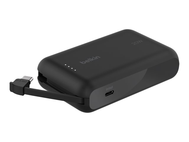 med integrerad kabel - 10000 mAh - 20 Watt - 3 A - Fast Charge - 2 utdatakontakter (USB-C) - svart