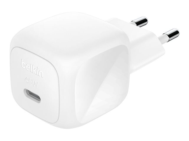 Produktbeskrivning Belkin BoostCharge strömadapter - kompakt - USB-C - 45 Watt Typ av produkt Strömadapter Utformad för Mobiltelefon, surfplatta Dimensioner (BxDxH) 3.35 cm x 3.35 cm x 3.45 cm Typ av utkontakt USB-C Snabbladdningsteknik Strömmatning 3.1, Fast Charge Effekt 45 Watt Återvunnet produktinnehåll Tillverkad av återvunnen plast Tillverkarens garanti 2 års garanti -